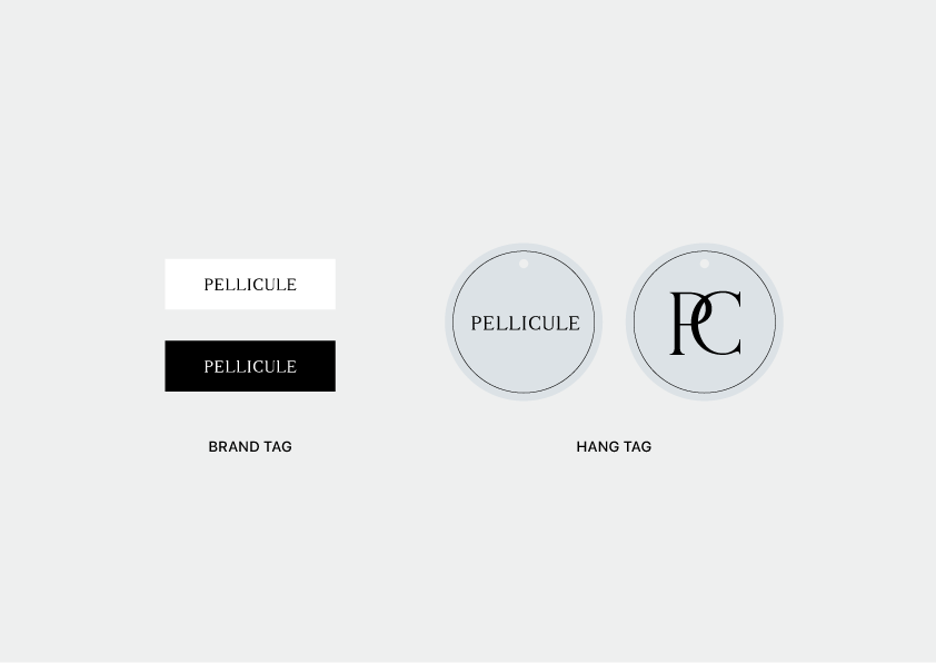 アパレルブランド「PELLICULE」のロゴ制作、ショップツールの制作を担当しました。